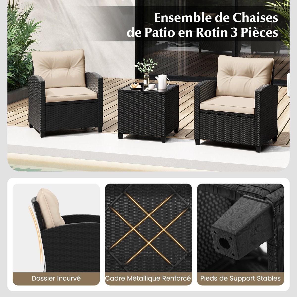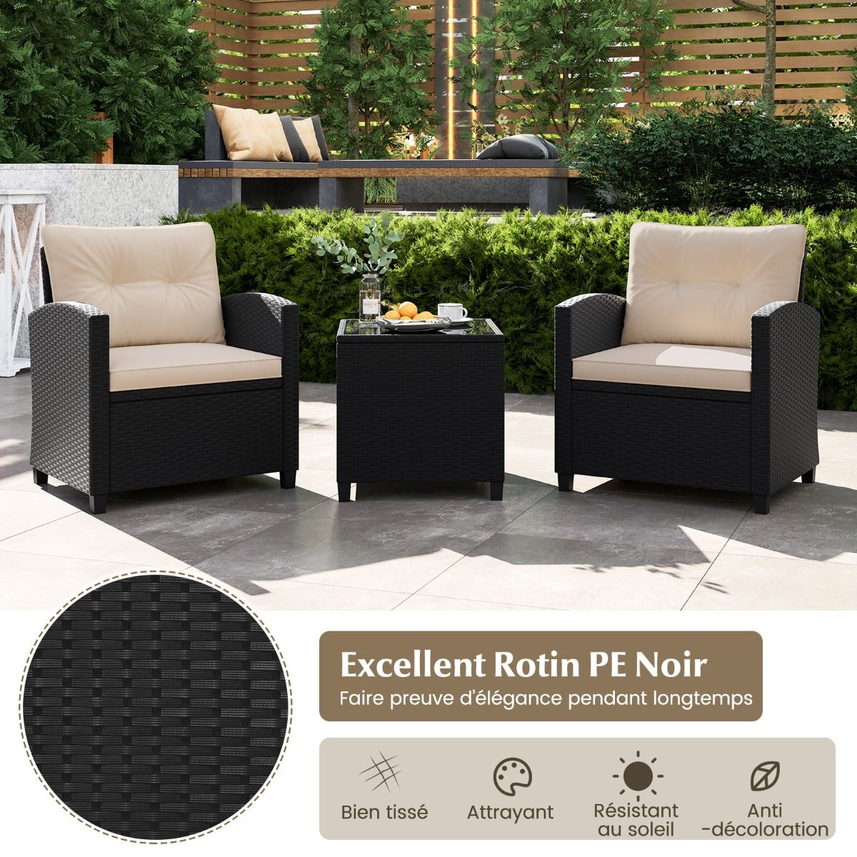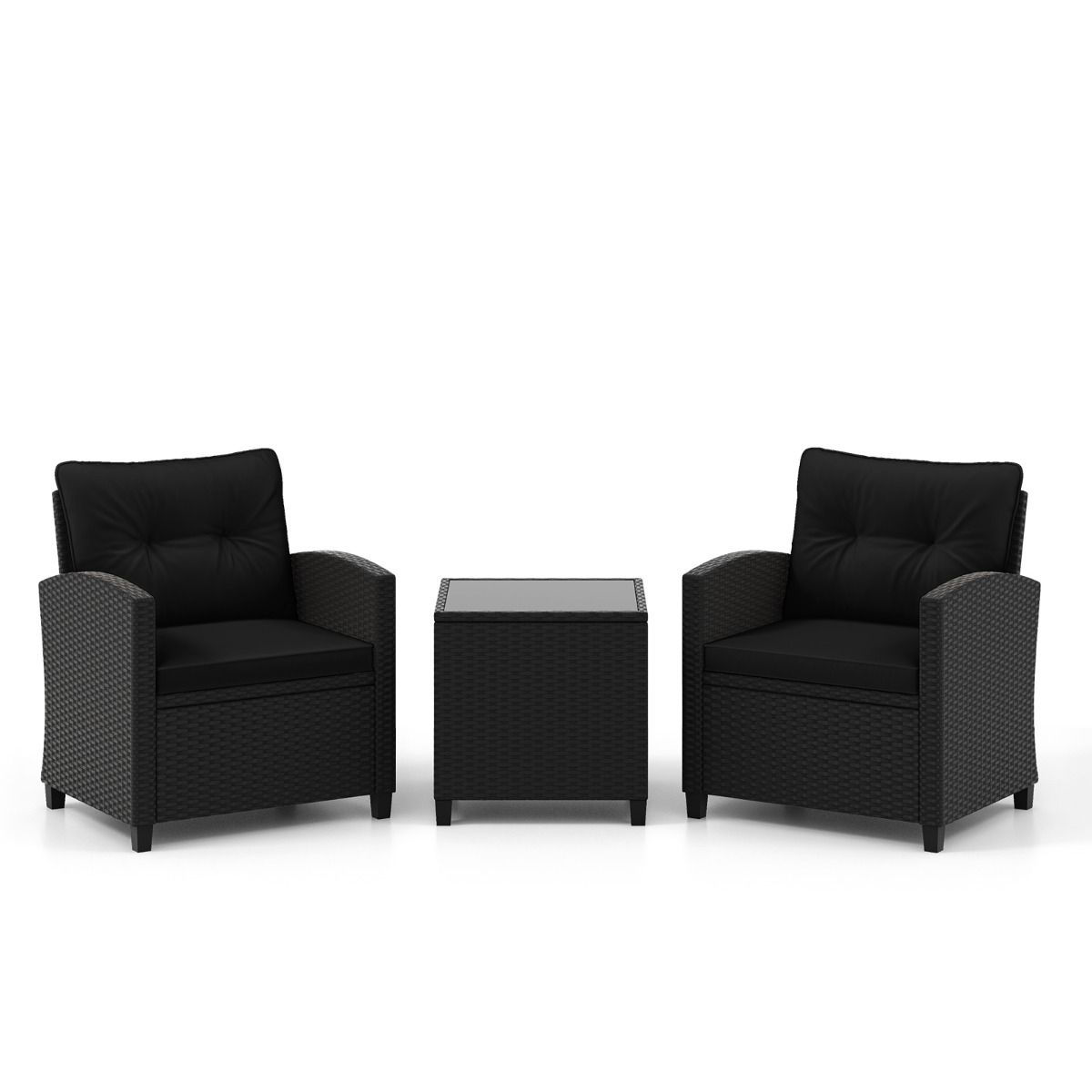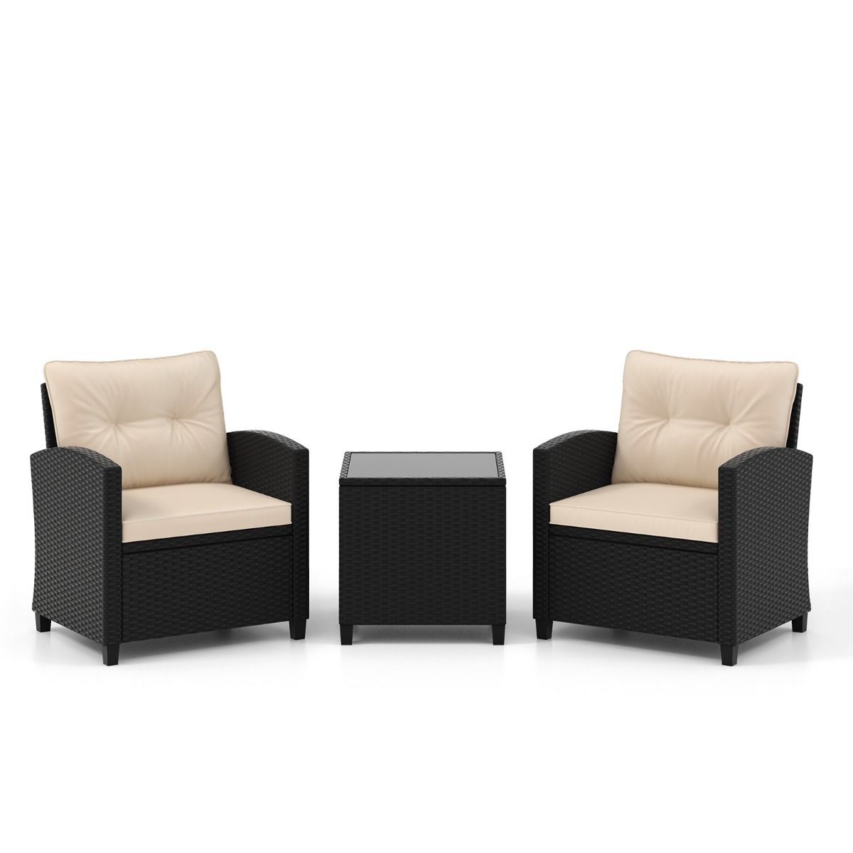 3-Piece Rattan Patio Furniture Set, 180KG Load Capacity, Garden Lounge Set with 2 Armchairs and Coffee Table with Black/Beige/White Top
